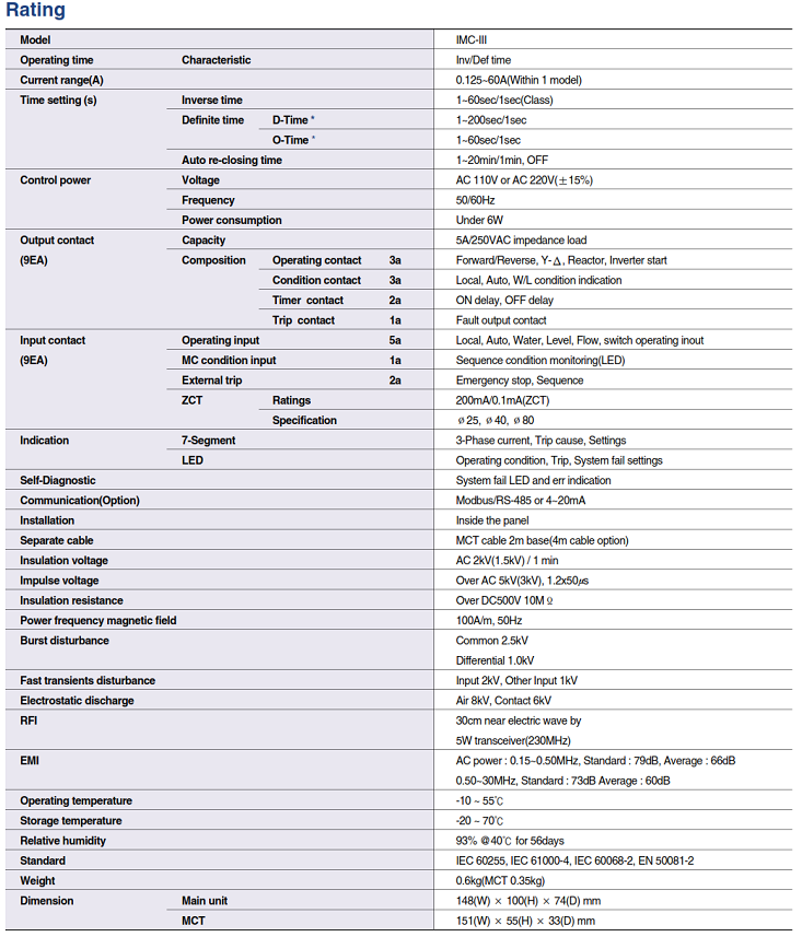 IMC(Digital Motor Controller), composed of Current Measurement, Motor Protection Relay(Over current, Rotor locked, Phase locked, Unbalance, Earth fault protection), various sequence control, Motor ONOFF button and condition LED lamp, is the integrated Digital Motor Protection relay.