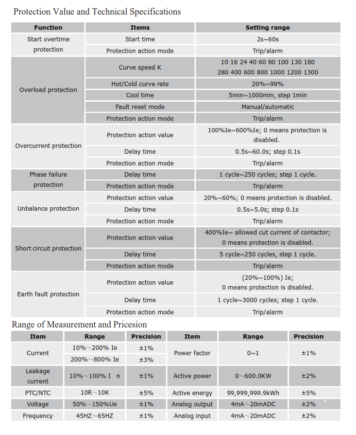 PMAC801 provide 9 kinds standard protection function: Start Overtime Protection, Overload Protection, Overcurrent Protection, Phase Failure Protection, Current Unbalance Protection, Earth Fault, Short Circuit Protection, Underload Protection